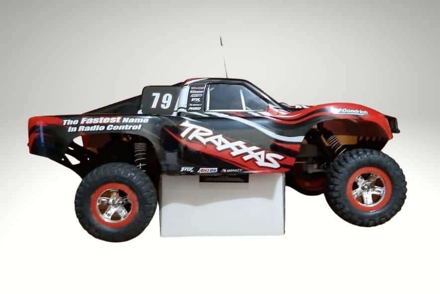 RC trucks that have been stored long-term should be kept elevated. This can be achieved by putting your RC truck on an RC car stand, a spare rim, or another object that will keep the RC truck elevated off its wheels.